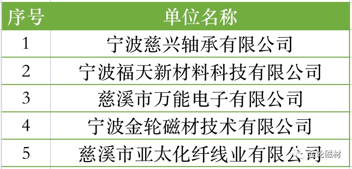 A közelmúltban a Ningbo Városi Gazdasági és Információs Technológiai Hivatal bejelentette az ötcsillagos és négycsillagos zöld gyárak listáját Ningbóban (az első atch), és a Jinlun Magnetic Materialt sikeresen választották zöld gyárként Ningbóban. Összesen 9 vállalkozást választottak ki Cixi városból. Közülük 4 vállalkozást választottak 5 csillagos zöld gyárnak, 5 vállalkozást pedig 4 csillagos zöld gyárnak.