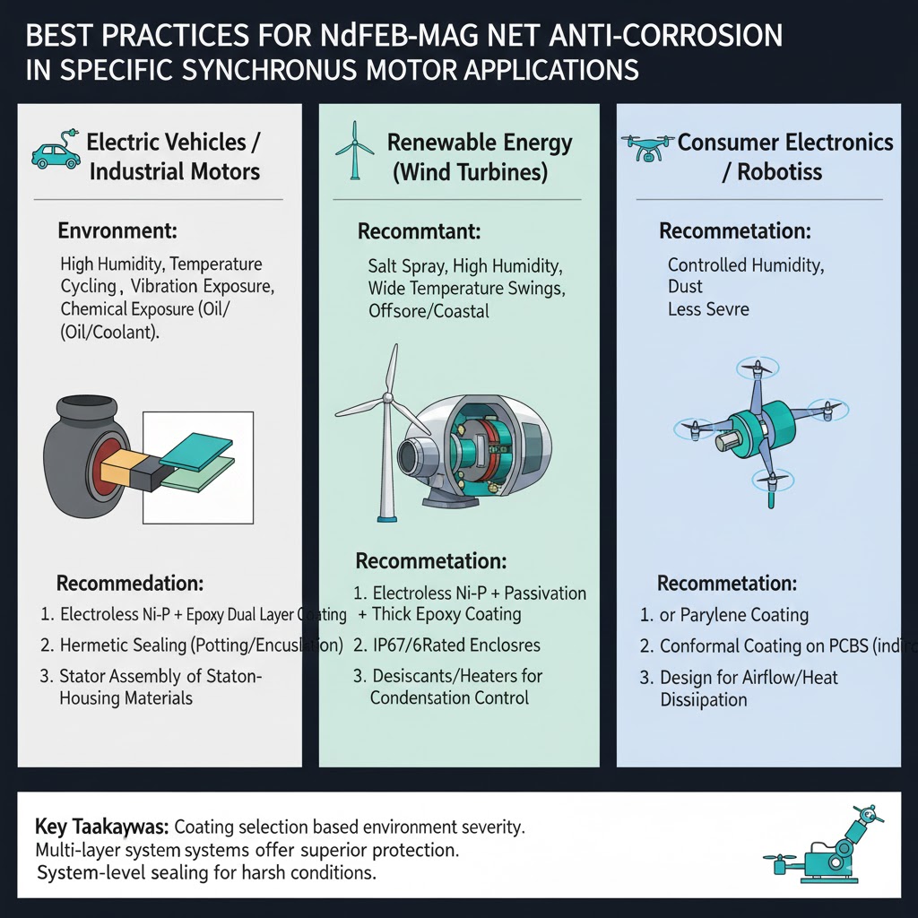 Összefoglalva, a szinterezett NdFeB mágnesek védelme a szinkronmotorokban többrétegű megközelítést igényel: hatékony felületi bevonatok (az alkalmazáshoz igazodva), tervezési optimalizálás (pórustömítés, rotortömítés), valamint rendszeres karbantartás (ellenőrzés, nedvességszabályozás). E stratégiák kombinálásával a gyártók és az üzemeltetők a mágnesek élettartamát 5–8 évről 15–20 évre növelhetik, csökkentve a motor állásidőt és a csereköltségeket – ami kritikus az elektromos járművek, a megújuló energiarendszerek és az ipari berendezések megbízhatósága szempontjából.
