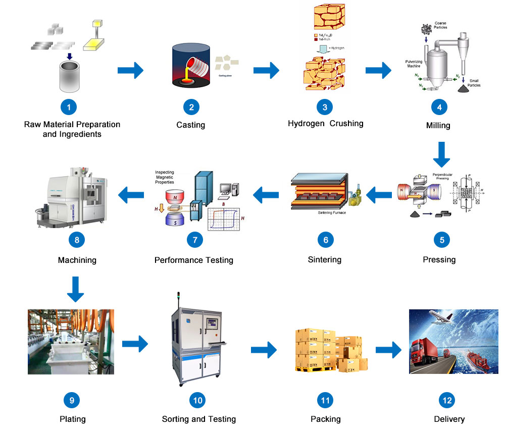 Ezeket az anyagokat ritkaföldfémek, például volfrám, kobalt, vas és higany felhasználásával állítják elő. A kobaltot és a vasat két különböző ritkaföldfémmel kombinálják, míg a volfrámot és a higanyt a volfrám segítségével kombinálják. E négy elem kombinációja a mágneses térerősség hatékony növekedését eredményezi. Emellett a mágneses mező erős összehangolását is eredményezik.