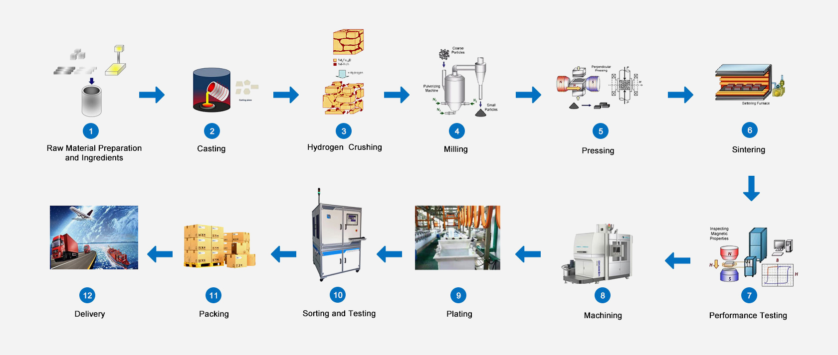 A Jinlun Magnet technológiailag innovatív vállalkozás, gyorsan fejlődő termelési léptékkel, termékteljesítménye és gyártási kapacitása magas szintű az iparágban. Ragaszkodik a termelési berendezések és folyamatok folyamatos korszerűsítéséhez és átalakításához, hogy egy intelligens digitális műhelyt hozzon létre, amely nyomon követi a termékek teljes életciklusát.